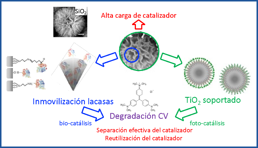 We synthesize "custom-made" particles and oxides films (SiO₂, TiO₂, ZrO₂) -with controlled pore sizes- which are used to hold molecules or to synthesize nanoparticles from ions in solution. Our goal is to provide new ways to retain and remove heavy metals in water, or to degrade potentially toxic molecules present in water.