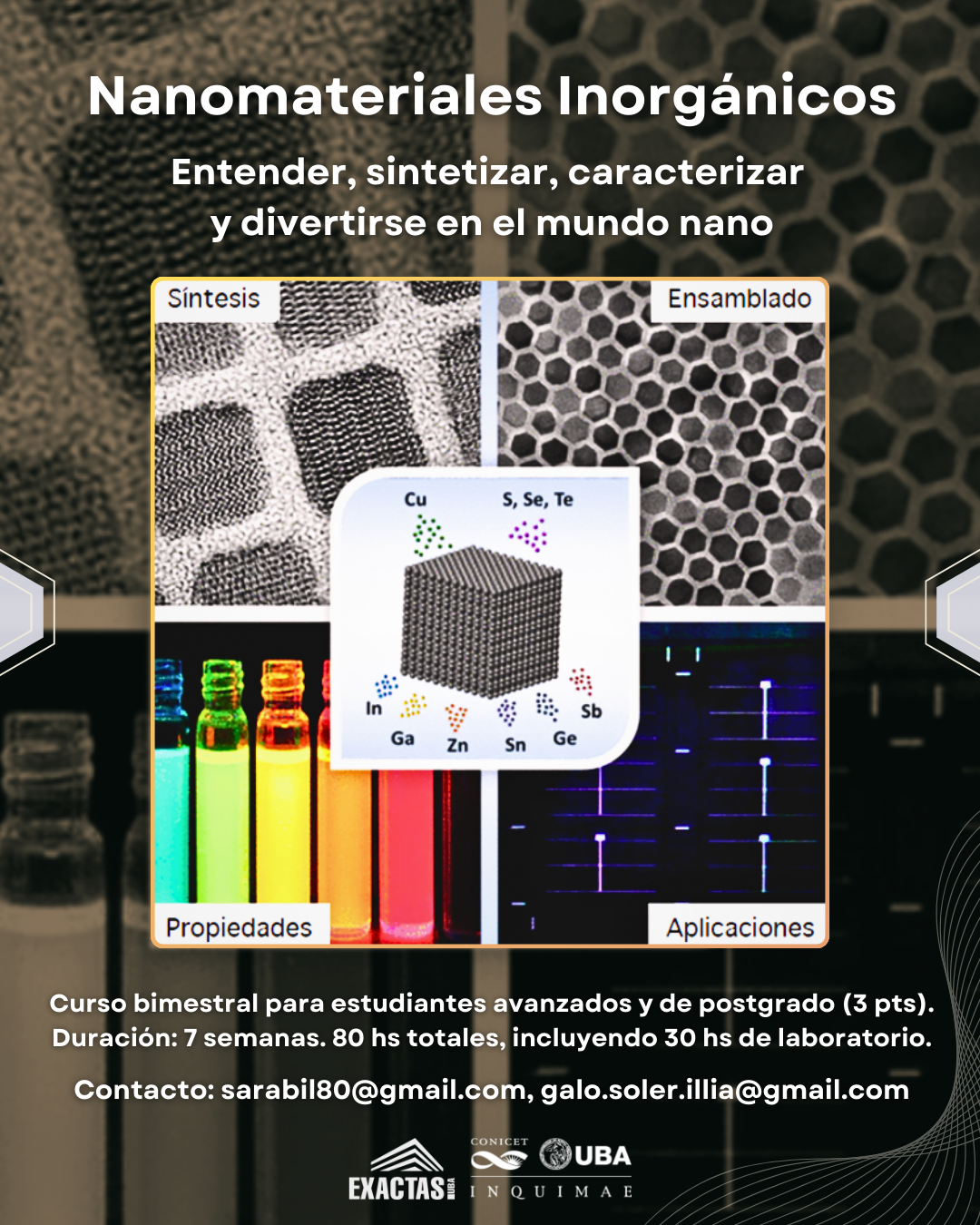 At DQIAQF - FCEN, the Inorganic Nanomaterials course is being held, where students explore the synthesis and characterization of materials at the nanometric scale. The course—taught by Sara Aldabe Bilmes and Galo Soler Illia, with the participation of María Claudia Marchi, María Luz Martínez Ricci, and Diego Onna—includes laboratory experiences and theoretical classes over a total of seven weeks, during which students delve into the properties and applications of these materials in various fields.